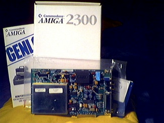 The original commodore A2000 genlock. It inserts into the video slot of the A2000 (and compatibles). Contains a 23pin monitor connector and two RCA connectors for video in and video out. The only difference between the A2300 and the A2301 is that the former is NTSC and the latter is PAL. An external version of the A2301 was available and was called the Home Video Kit. This was probably the A2301 actually mounted in an external case.
