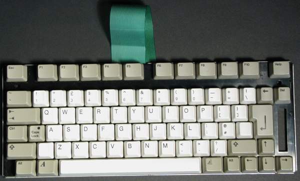 The A600 keyboard attaches to the motherboard via a laminated ribbon cable. Unlike other models of Amiga, the A600 does not have a keypad, and so the keyboard also has a slightly different layout, particularly keys like HELP and the cursor keys.