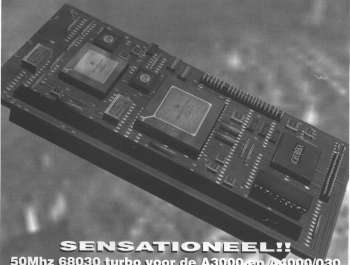 An accelerator which plugs into the CPU fast slot of the A3000 series, and A4000 series machines.
