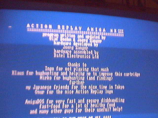 This is the A2000 version of the Action Replay Mk-III. The device plugs into the CPU slot, not a Zorro slot which means if your accelerator uses the CPU slot, you won't be able to use this device. The device allows the user to freeze the computer at any point they choose where upon a new display opens that allows the user to view memory contents, rip music and graphics or cheat in games. It also had the option of saving memory to a bootable floppy disk which when loaded would place the memory in the exact state when the machine was frozen. This allows the user to copy games by bypassing the copy protection.