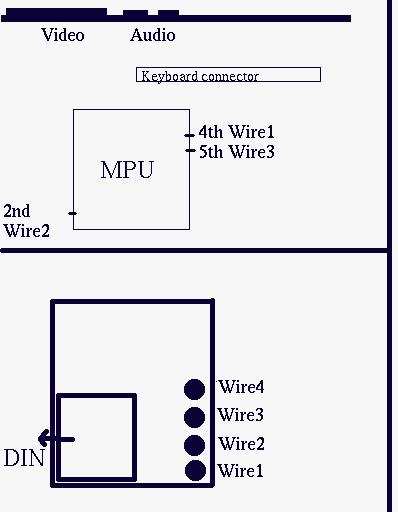 - 4 wires going to a connector, which is plugged onto the MPU keyboard chip