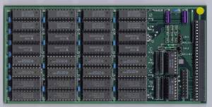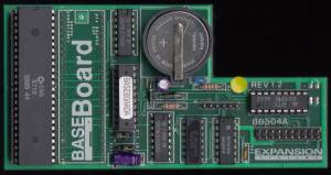 The baseboard is a two piece unit. The first part (top image) fits underneath the Gary chip (note CSG5719 Gary on the card). The second parts connected via a cable and sits in the trapdoor slot. The board which sits underneath the gary chips is necessary so that more than 512K of memory could be added via the trapdoor slot. The baseboards adds up to 4MB of additional memory.