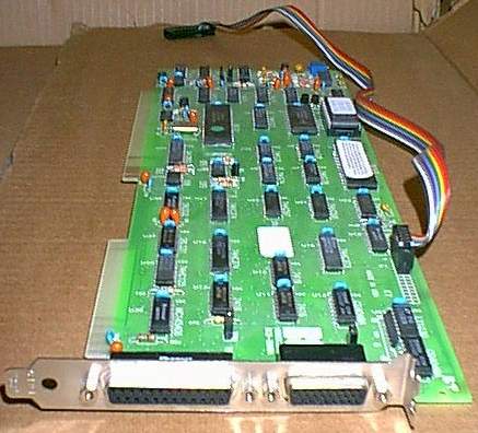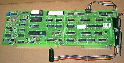 Full length Zorro II board which also uses an ISA slot. The card also connects to the internal serial pin header in the A2000 via a ribbon cable. Because the connector for the Amiga side is keyed, it probably won't fit in A2000's which are revision 4.4 and older. Revision 6.2 motherboards have no problem. The manual states that the card can also be used in A3000 and A4000 machines using a special external serial adaptor, however this was not supplied with the board. The unit was also supplied with a floppy disk labelled "BCD Amiga FreeDisk" and a cable for connecting VTRs/VCRs. This particular board is labelled (c) 1991. According to an advert in Video Toaster User, the BCD-2000A is a "single frame controller" with additional control features such as SMPTE Time Code generator and reader, EBU generator, RS422/232 serail controller and parallel controller.