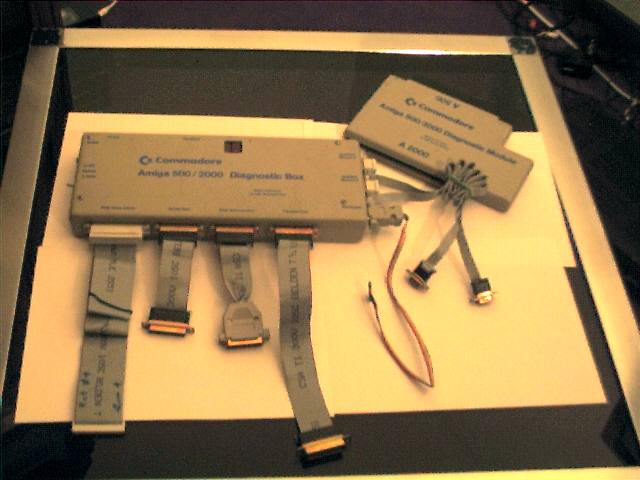 This unit made by commodore tests all the functions of the A500/A1000/A2000 even if the Amiga itself is dead. It displays error codes in binary. A second Amiga can be used to receive information via the serial port by using a terminal program. This unit was only ever sold to Amiga Service companies by Commodore.