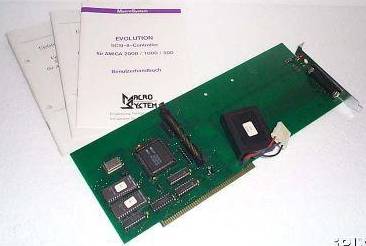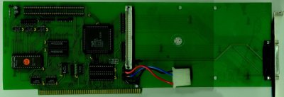 Full length Zorro II SCSI 2 card containing an internal 50pin SCSI connector, an external DB25 connector and enough space to mount a drive on the card.