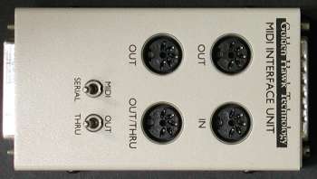 MIDI device designed for use with the A500 but probably works with most Amigas. It has MIDI In, 2 x MIDI Out, MIDI Out/Thru and a serial pass-thru which can be selected by a switch.