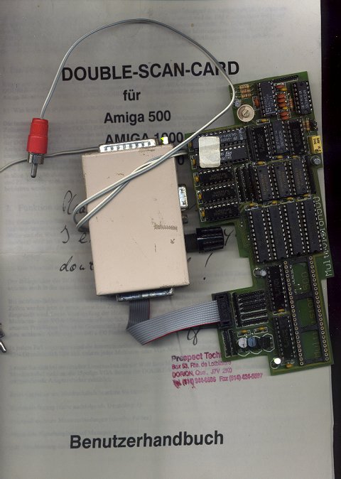 The Multivision 500 is an internal scandoubler for the A500 and A1000. It works by removing the denise chip from its socket, placing it onto the card, then plugging the card into the denise socket. The external adaptor just allows you to physically attach an SVGA monitor and also has an RGB pass-thru.