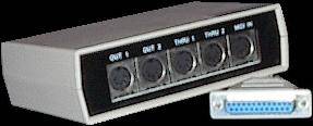 Connects to the Amiga's serial port and provides 2 x MIDI out ports, 2 x MIDI Through ports and 1 x MIDI in.