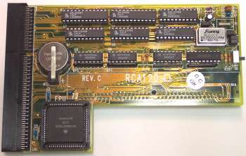 A RAM card for the A1200 which plugs into the trapdoor slot of the A1200. This card is not PCMCIA friendly if it has more than 4MB of RAM installed. If you install 8MB on the card and require the use of the PCMCIA slot, you must move JP2 to the ON position to disable the upper 4MB of RAM. Rev B versions of the card support a PGA FPU whilst Rev C's require a PLCC FPU.