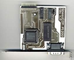 High speed (460800bps) serial port for the Amiga 1200 with a 16byte FIFO. Connects to the clock port on the A1200. There is a jumper on the card which appears to allow connecting of up to 2 SpeedCOMs or 1 SpeedCOM and 2 PARalizers)