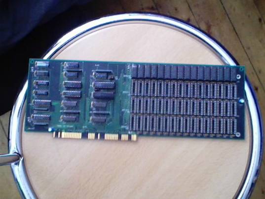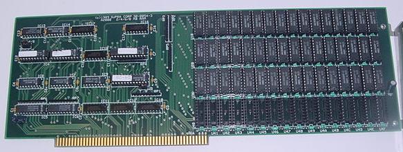 Full length Zorro II card which provides 2/4/6 or 8MB of RAM. RAM is added in the form of 18pin 1Mx1 DRAMs in banks of 16. The memory chips supplied on the card are Sanyo LCS 321000P-80