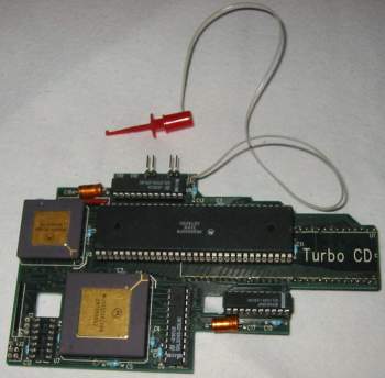 This accelerator fits into the CPU socket of the CDTV, but unfortunately doesn't have any additional option for adding RAM. The card can be switched back to 68000 mode for compatability reasons if required by using a jumper located on the card.