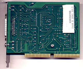 It is a PAL video encoder made by a German company called Electronic Design (www.electronic-design.com). It is unknown if an NTSC version exists. The Video Converter is supposed to work in any Big Box Amiga. It provides both a Composite and S-video output as well as a buffered RGB output. The buffered output will not operate a genlock. The RGB output provides a standard 15Khz signal. The three trimpots in the centre allow fine tuning of the input RGB levels to eliminate any false colouration. A spare bracket is provided to allow it to be attached to the A2000 video port. Incidentally, Electronic Design made a range of other video hardware, including genlocks and timebase correctors. The timebase corrector was a stand-alone device that did not need an Amiga, however it had a 23 pin socket to allow a 1084 monitor to be attached.