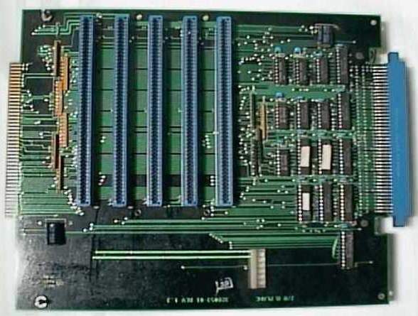 "This item is backplane for Zorro I expansion cards (also works with Zorro II, though you plug them in backwards) for the Amiga 1000. These were built by the Amiga group in Los Gatos, basically as a proof of concept for the Zorro bus. This backplane is supposed to be powered by a separate power supply (via the connector at the bottom), but it has been modified to run with the A1000's own power supply. " - Dave Haynie